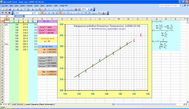 (φύλλο εργασίας «Least Squares (fixed intercept)»), θα